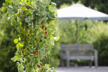 Amppelimansikka mahtuu pienellekin parvekkeelle tai terassille, koska se on helppo ripustaa seinälle...
