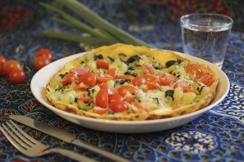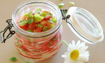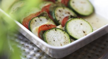 Valmistusohje 4 annosta 1/2 kg tomaattia pienehkö kesäkurpitsa 200 g viipaloitavaa sulateju...