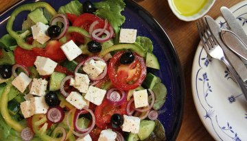 Valmistusohje 5 annosta 1 ruukku salaattia 3–4 tomaattia ½ kurkkua 1 paprika 1 pieni punas...