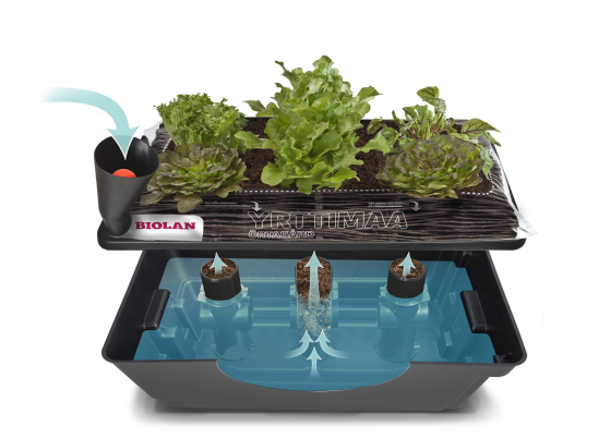 Vattenbassäng är ett tillbehör till Växtsäcken. Bevattningsbassängen fungerar som ett vattenlager, från vilket vattnet sugs upp i växtunderlaget enligt växternas behov. Också då man bevattnar ovanifrån rinner överskotts vatten ner i bassänglådan. Bevattningsbassäng underlättar användandet av Växtsäck speciellt på balkongen och terrassen, då inget vatten rinner ut och smutsar golvet. Vattenlagret i Vattenbassäng räcker för skördebärande tomatplantor för ungefär en vecka och för småplantor en mycket längre tid. Det gör det möjligt att odla till exempel på sommarstugan och låter också hemträdgårdsodlaren hålla semester på sommaren, bara man skött om att växthuset eller den inglasade balkongen ventileras.