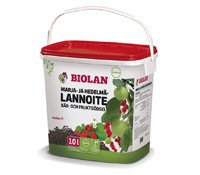 Biolan Bär- och Fruktgödsel är ett naturenligt specialgödselmedel, som utvecklats speciellt för bärväxter och fruktträd som producerar skörd. Det innehåller för växterna nödvändiga näringsämnen i lämpliga förhållanden, vilket ger en riklig bär- och fruktskörd av god kvalitet. Samtidigt ger den näring även för jordens mikrober och daggmaskar och jordens kvalitet och struktur förbättras. Biolan Bär- och Fruktgödsel kan också användas för gödsling av perenner. Mångåriga blomplantor har nytta av de näringsämnen som gödselmedlet innehåller och de får en riklig och ståtlig blomning. 10 l packlåda