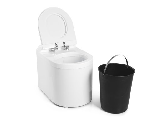 Aseta ämpäri laitteeseen paikoilleen. Astia on oikein paikoillaan, kun istuinrengas ja -kansi menevät hyvin kiinni.