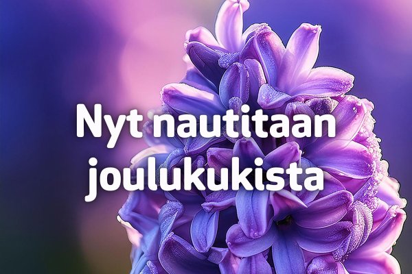 Tänä jouluna hurmaavat joulukukkien pehmeät ja syvät sävyt: vaaleanpunainen, valkoinen, klassinen punainen – ja nyt myös violetti! Suosikkeina jatkavat ritarinkukka, joulutähti ja hyasintti. Oikealla hoidolla niistä riittää iloa pitkään. Joulutähti viihtyy lämpimässä ja vedottomassa paikassa, kun taas sipulikukat, kuten hyasintti, ritarinkukka ja tulppaani, kukkivat pidempään viileässä.